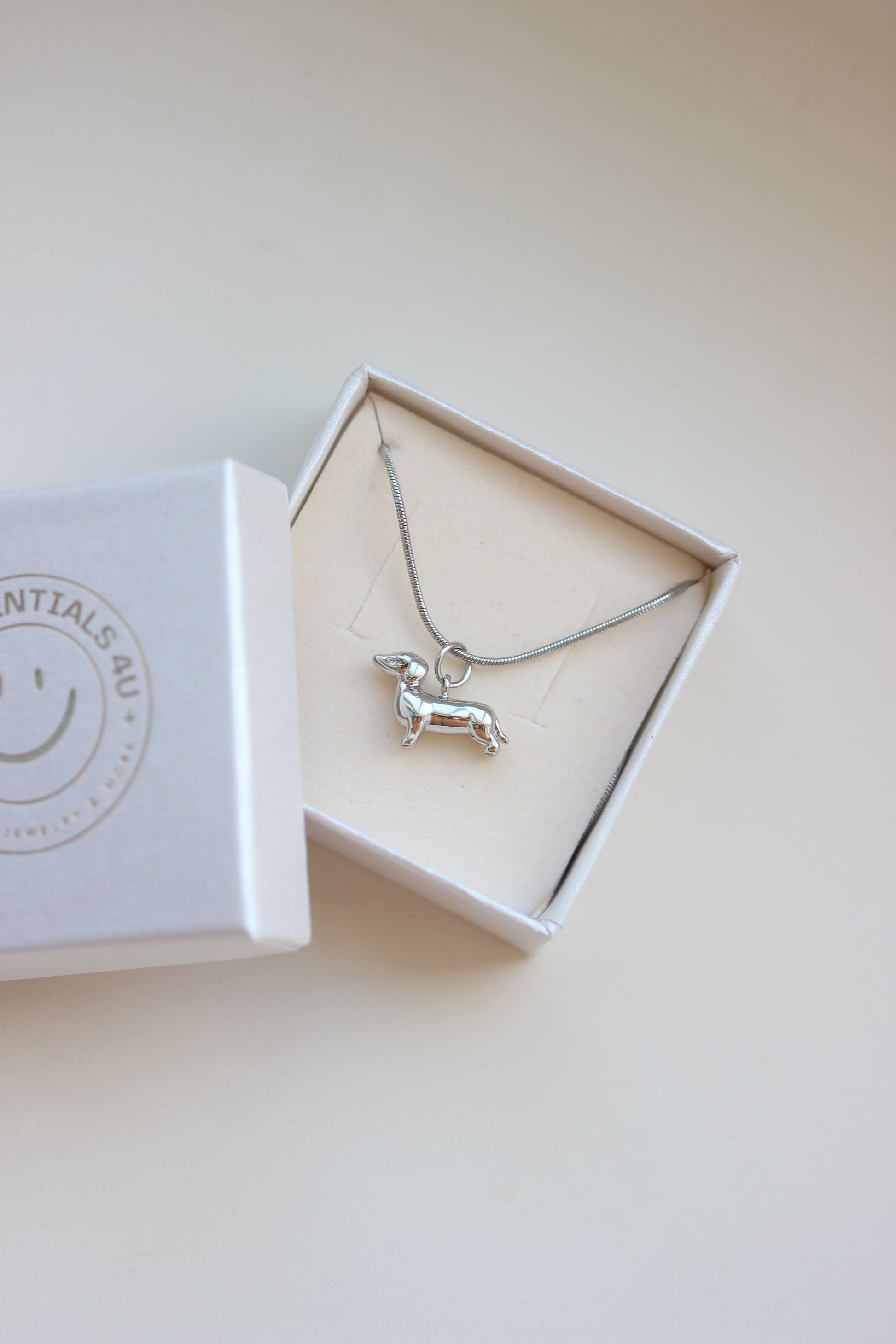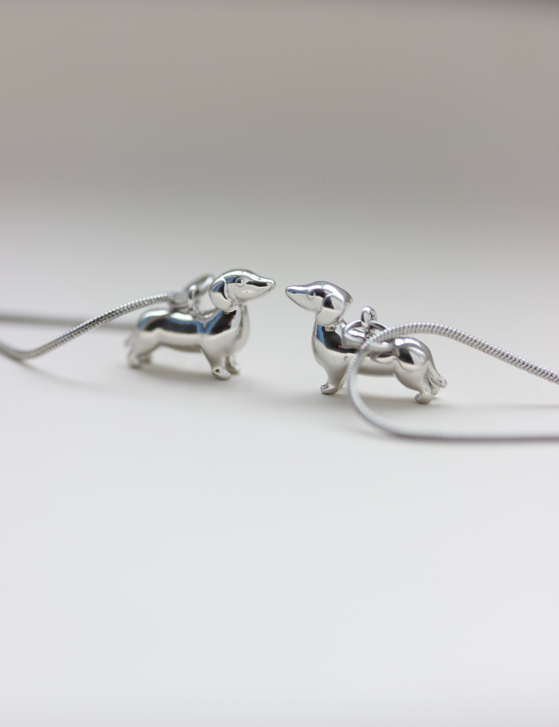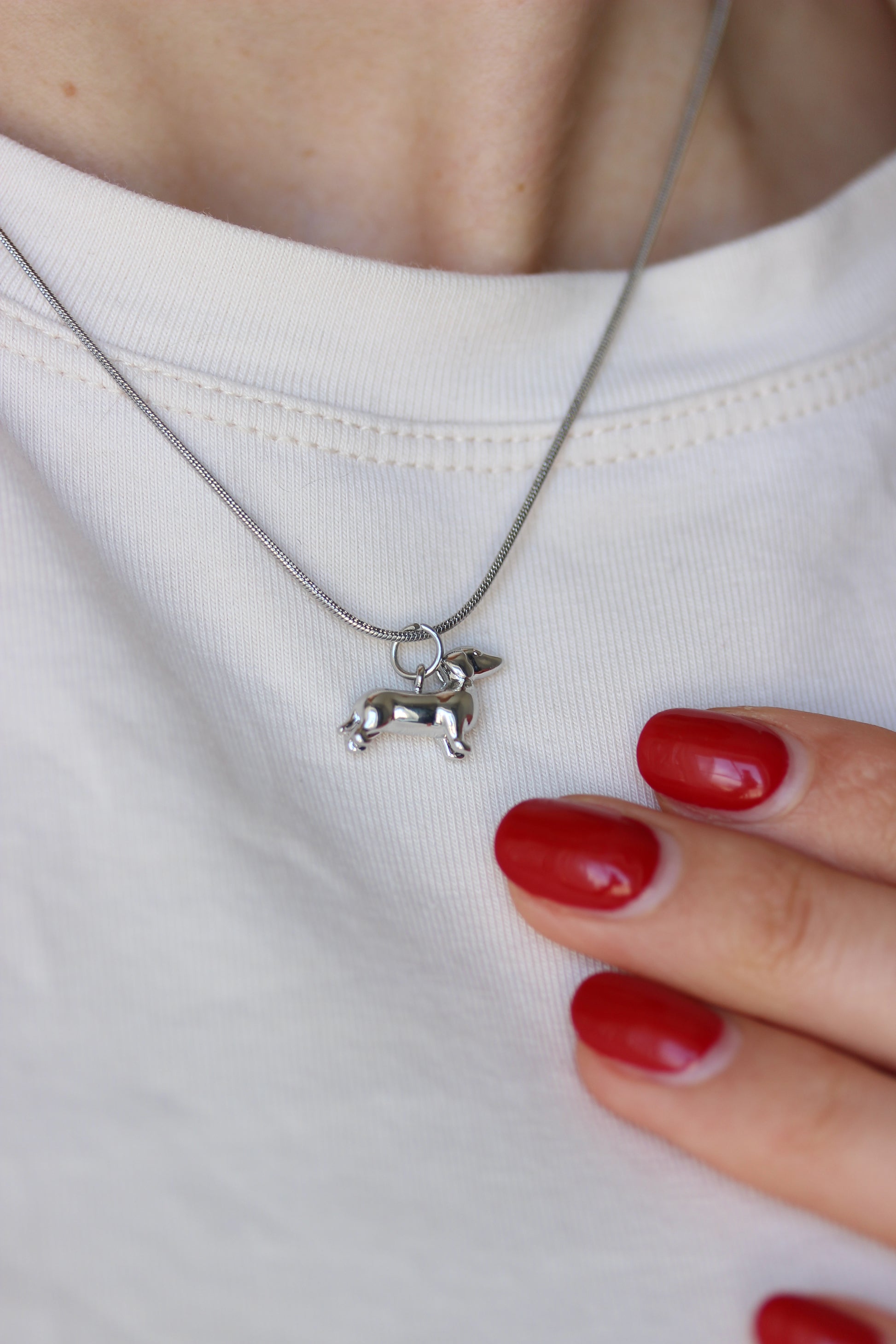 Diese schlichte Kette wird mit einem silber Dackel-Charm kombiniert.
