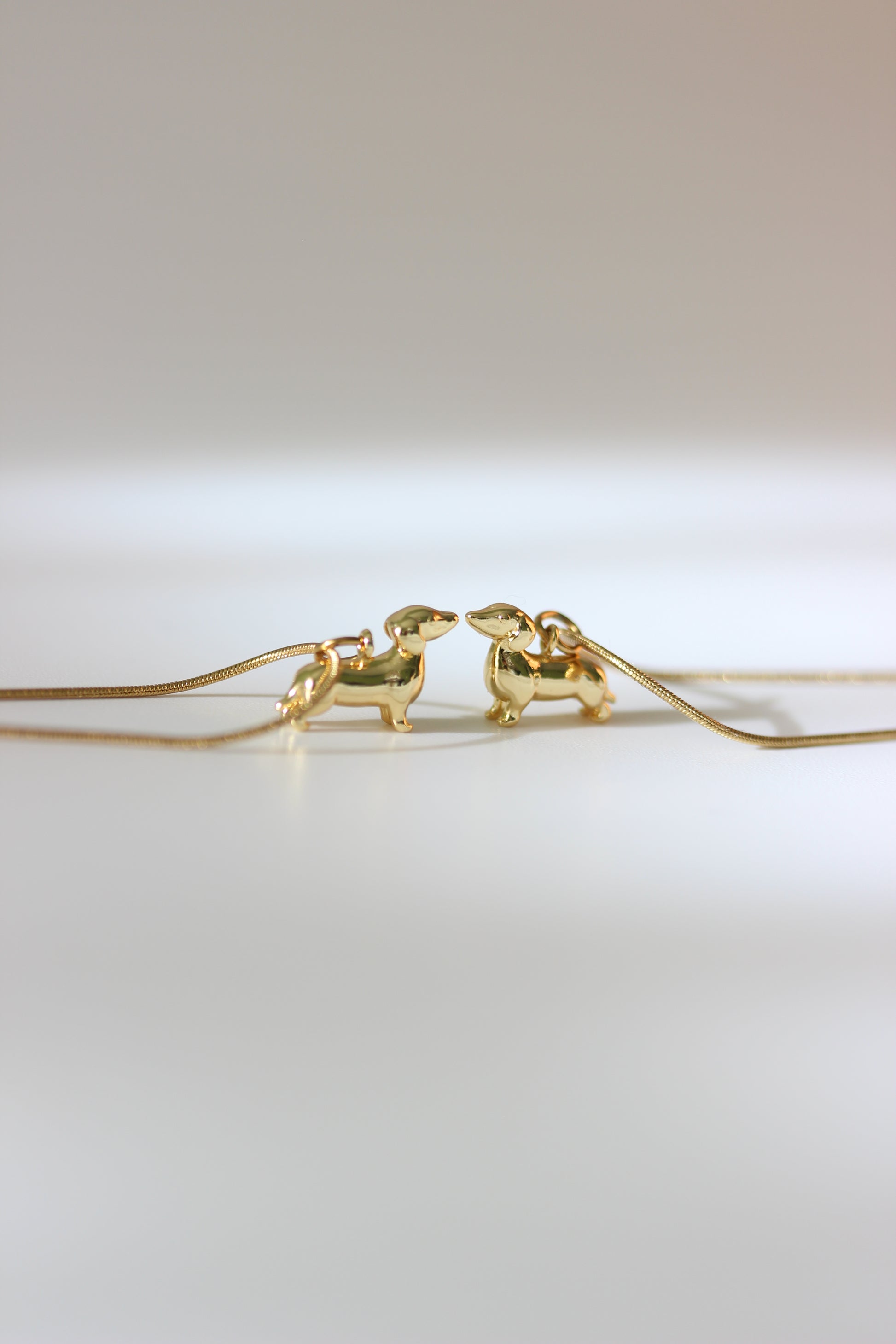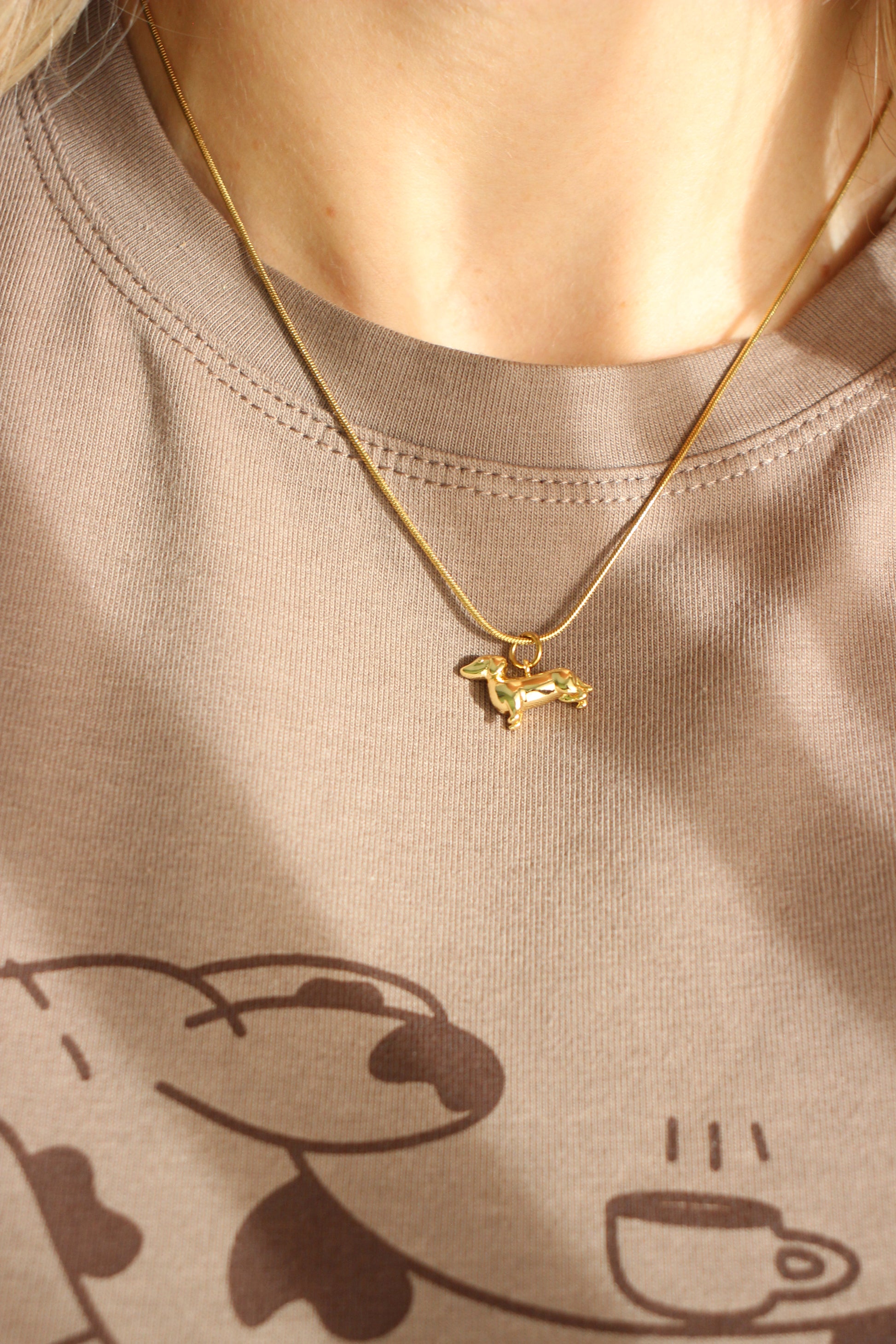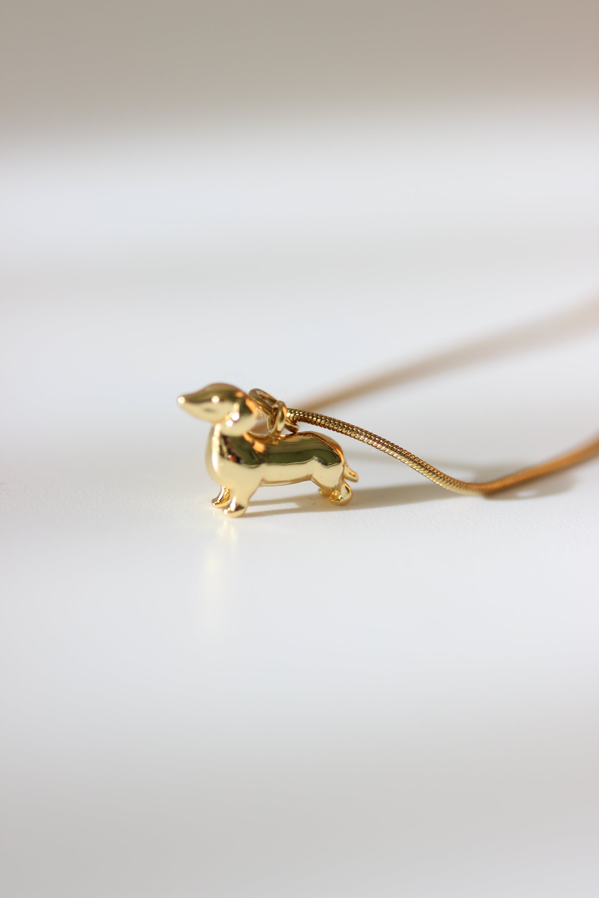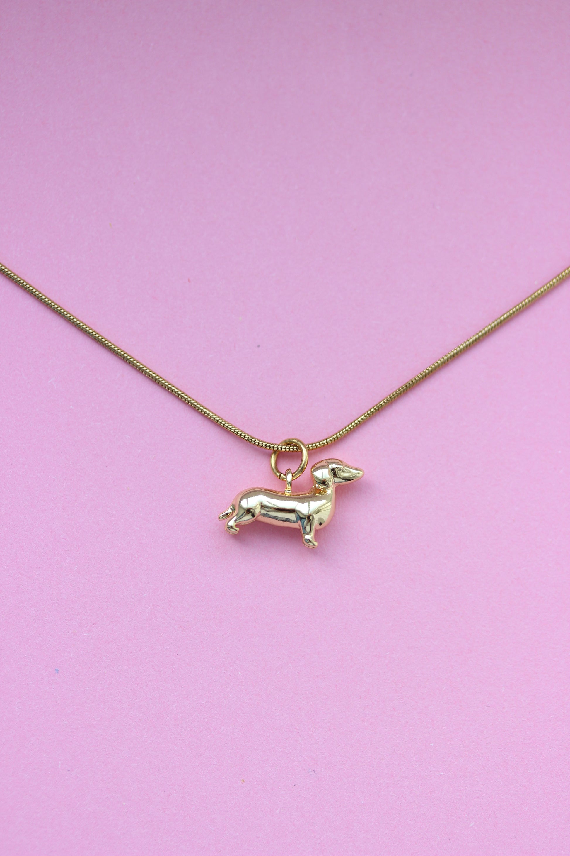 Diese schlichte goldene Kette wird mit einem 18k vergoldeten Dackel-Charm kombiniert.