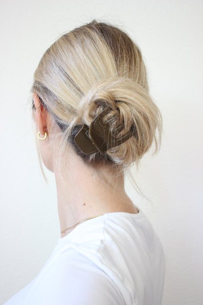 Diese gebrandete Haarklammer ist mit seiner braunen Farbe ideal für den Herbst.