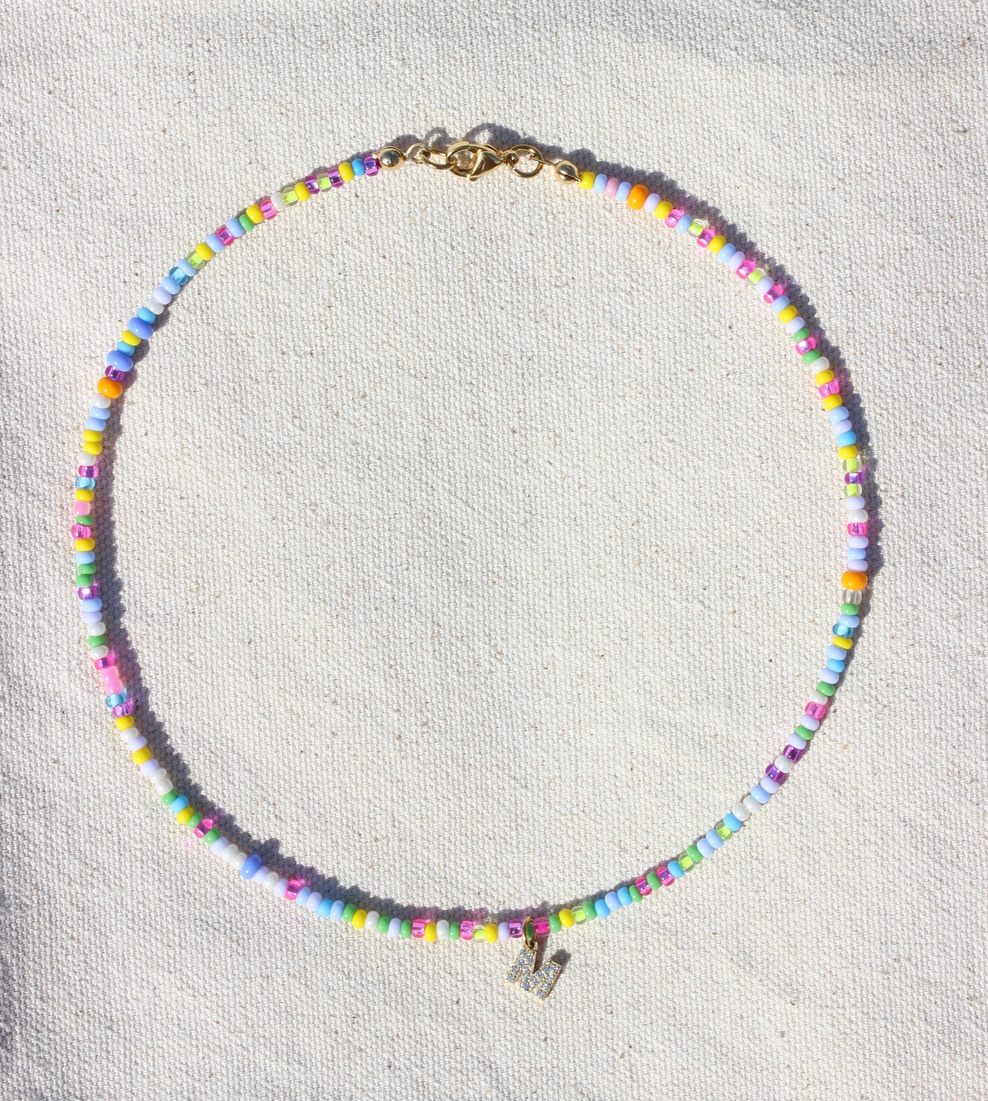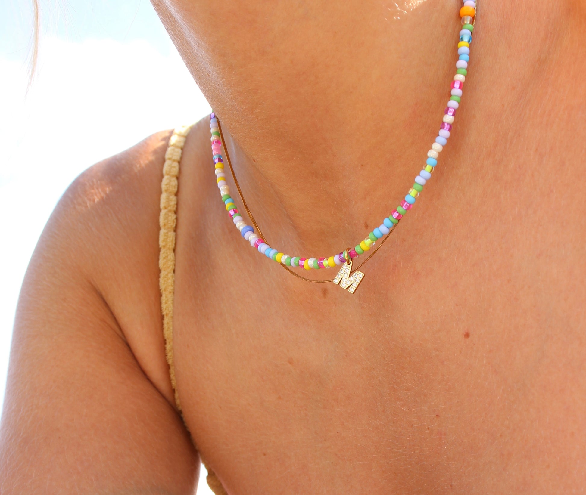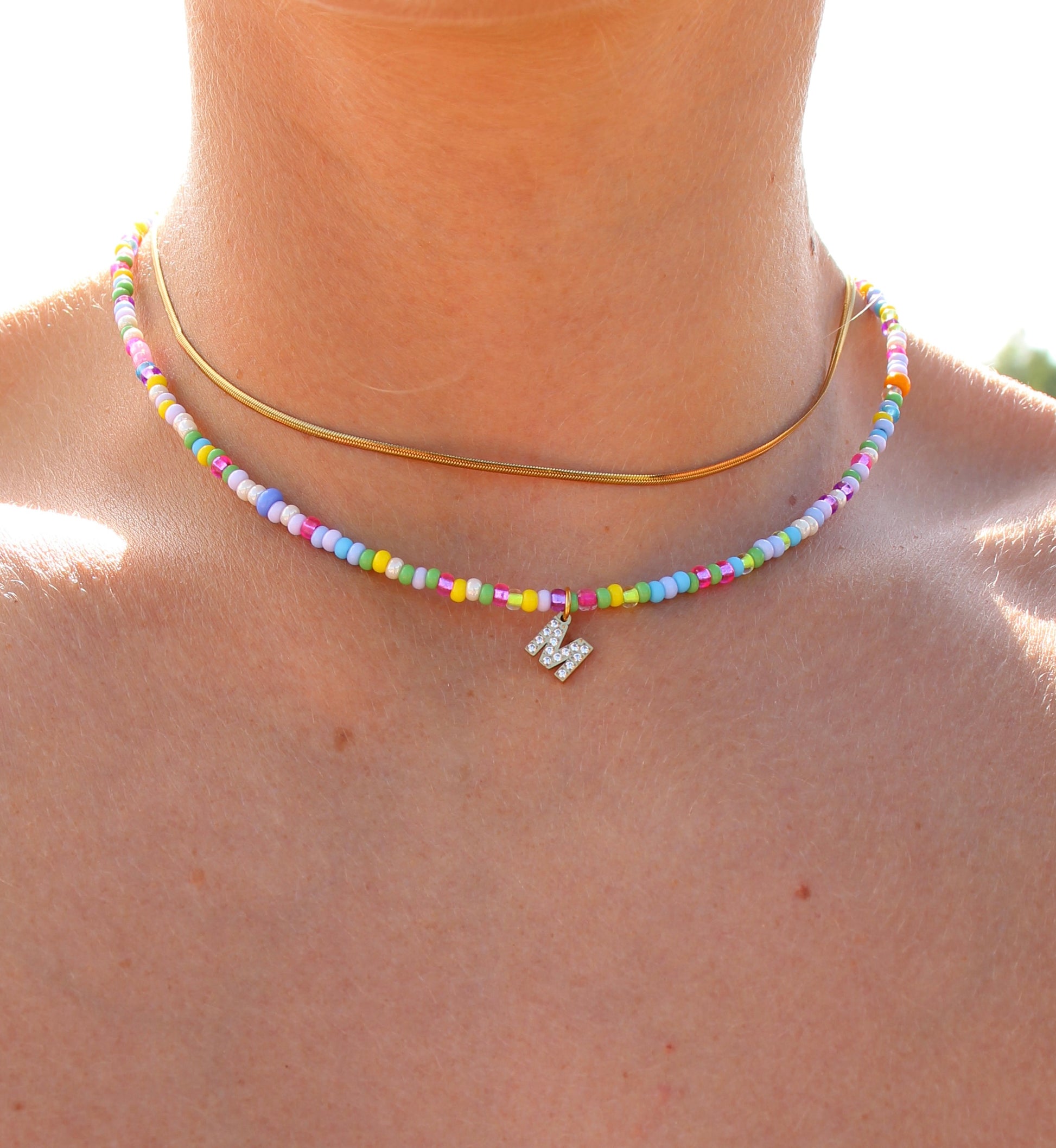 Diese farbenfrohe Halskette kann mit Deinem gewünschten Buchstaben personalisiert werden.